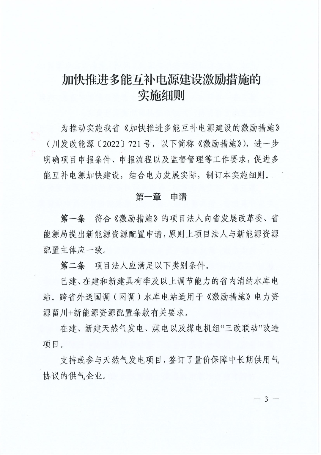 近日四川省能源局、發(fā)改委發(fā)布了一則《加快推進(jìn)多能互補(bǔ)電源建設(shè)激勵(lì)措施的實(shí)施細(xì)則》,文件中對(duì)之前發(fā)布的《加快推進(jìn)多能互補(bǔ)的激勵(lì)措施》中的申報(bào)條件、申報(bào)流程以及監(jiān)督管理做出進(jìn)一步明確。